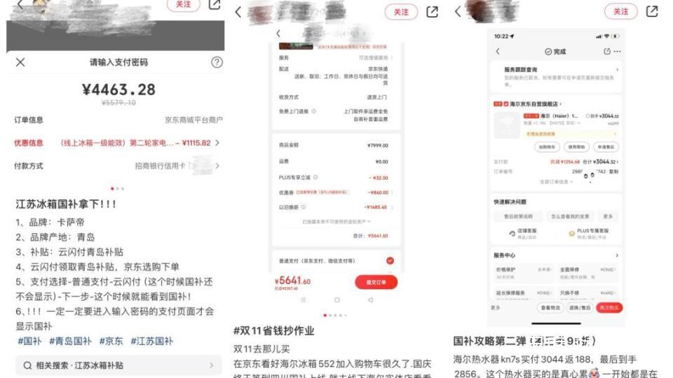 在“国补”(国家政府补贴)叠加双11大促的背景下,冰箱、洗衣机、热水器、燃气灶等大家电销量一路飘红,家电行业的双11竞争也变成了“补贴宣传”,穿梭在线上线下的消费者们也在绞尽脑汁地凑单算账,势要将补贴用在刀刃上,在社交媒体上,随处可见的“补贴薅羊毛指南”更是成了爆文。