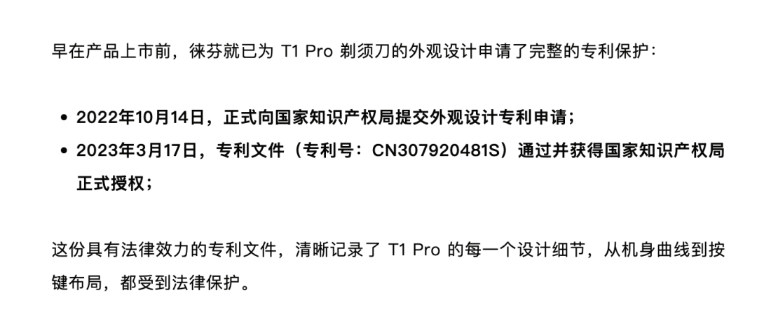特别是徕芬主推的 T1 Pro,不仅是产品“体验不佳”的重灾区,还有一些吃瓜群众发现它和松下更早发布的一款剃须刀产品——松下 Air TM20 有着“过于巧合”的相似之处。