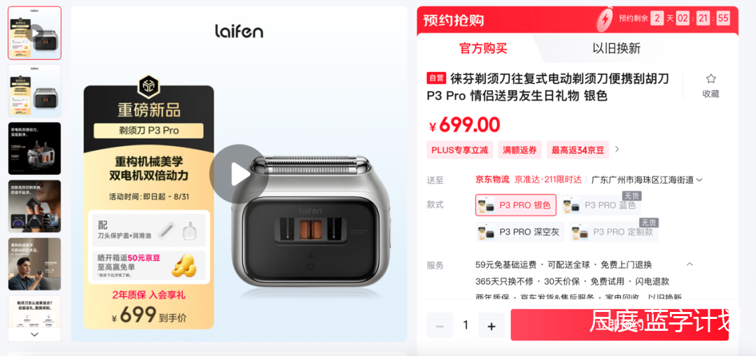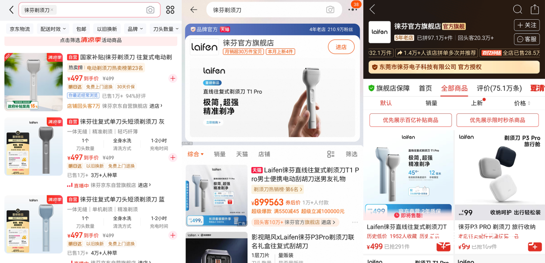 销量方面,我简单统计一下京东、淘宝和 PDD 三大平台的销量,徕芬 T1 Pro上市两个月卖了还不到 3 万台;哪怕加上还在严重缺货的 P3 Pro,两款徕芬电动剃须刀全网加起来应该也不超过 5 万台。