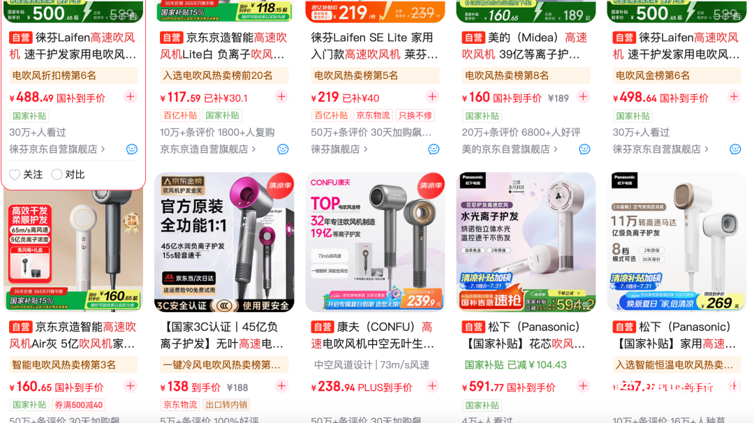 是大家不爱高速吹风机了吗?非也。主要原因还是,现在做平价高速吹风机的品牌太多了,大大稀释了徕芬的性价比优势。