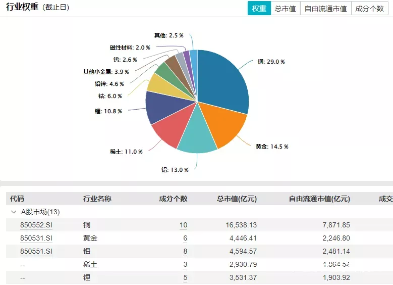 其跟踪的中证申万有色金属指数,由沪深两市中日均总市值前50的有色金属行业公司组成。指数重点覆盖工业金属,同时包含黄金、稀土、锂等多个细分领域,权重分配相对合理,兼具代表性和弹性:既包含了具有金融属性的黄金等贵金属,为投资组合提供避险功能;也涵盖了工业金属如铜、铝、锌,这些是经济发展的基石;同时还布局了稀土、锂、钴等战略金属