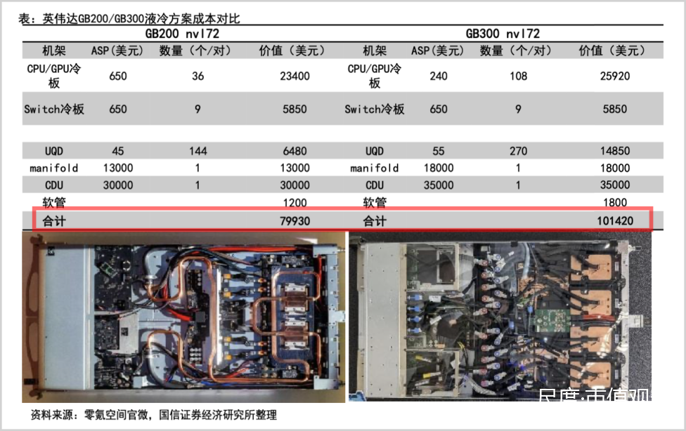 而据国信证券研究,GB300的液冷方案总成本高达101420美元,约等于72万元,比上一代足足高出近30%。