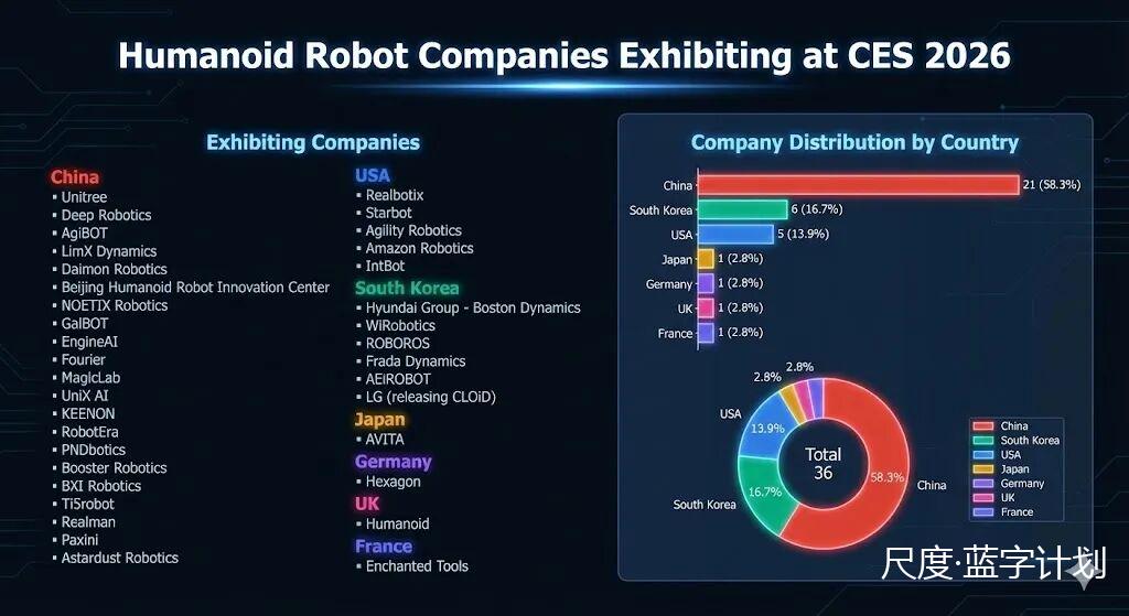 这里原本是全球机器人的竞技场,但今年格外像华强北——本届 CES 机器人展商中,中国企业多达 149 家;在人形机器人领域,中国企业的占比更是突破 55%。