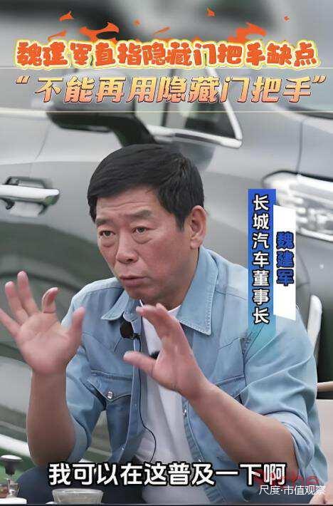再比如,让很多车主头疼的“隐藏式门把手”, 他在2025年5月就提出其中的风险,近期直播中魏建军直言:“隐藏式门把手是伪技术,千分之一风阻改善得不偿失。”长城汽车内部更是就此展开长达7个月的激烈讨论,最终做出一个“逆行”的决定——放弃隐藏式设计,使用机械式门把手。